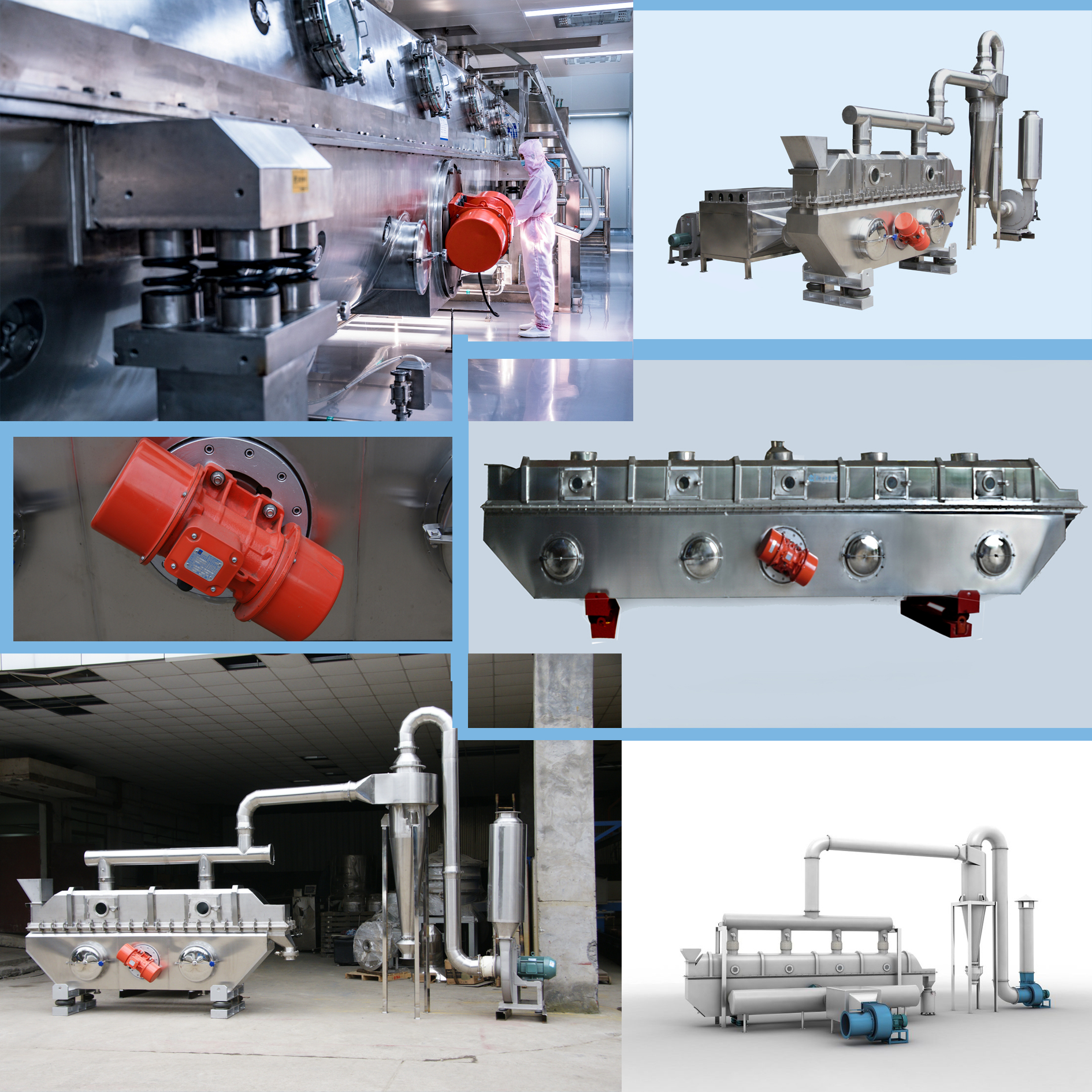 在振動流化床中,輔助機(jī)件與干燥機(jī)之間確實(shí)需要保持足夠的間隙。這是因?yàn)檎駝恿骰苍谶\(yùn)行過程中,主機(jī)可能會產(chǎn)生較大的振幅。如果主機(jī)與輔助機(jī)件之間的間隙過小,可能會導(dǎo)致兩者發(fā)生碰撞,影響設(shè)備的正常運(yùn)行,甚至可能損壞設(shè)備。