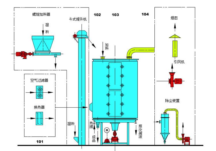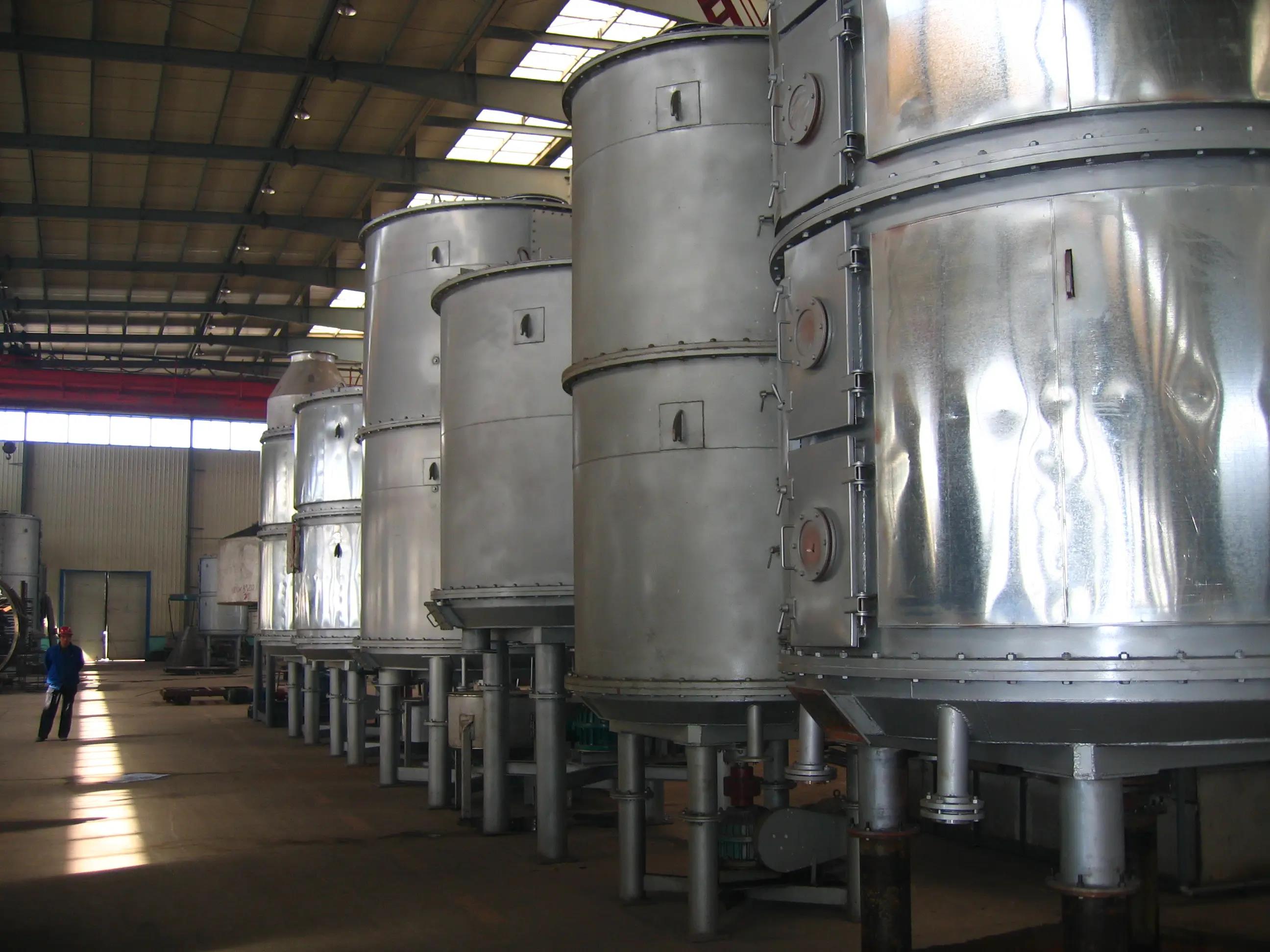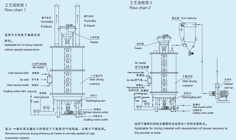 8、干燥層數(shù):共8層,上部6層為蒸汽加熱干燥,剩余2層為降溫,且降溫層和蒸汽干燥層可以相互切換。物料經(jīng)過2層冷卻后,出料溫度≤40℃